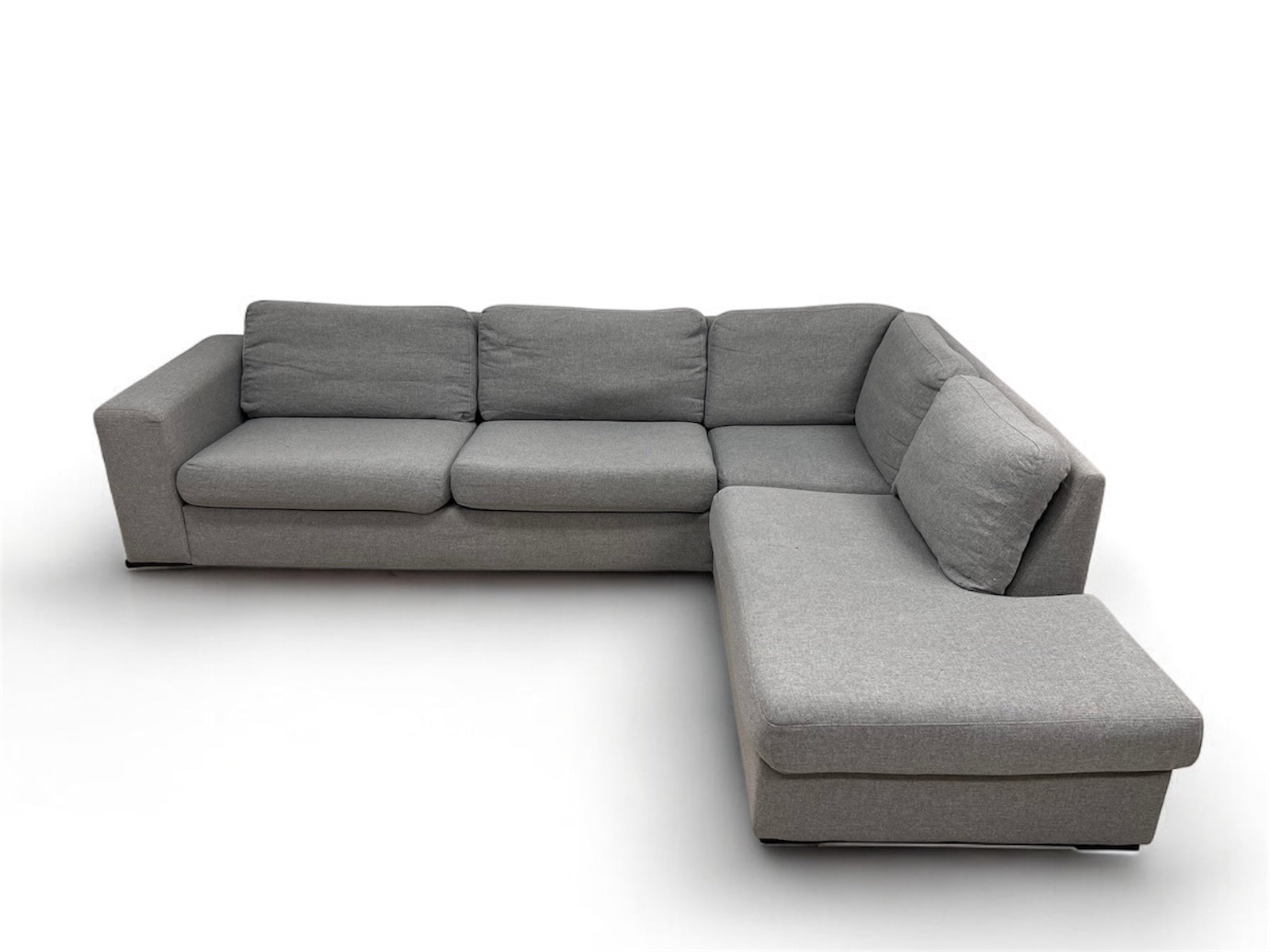 Fin, meget komfortabel, nyrenset, godt brukt hjørnesofa med åpen ende til høyre sett forfra (sidene kan ikke vendes) i veldig fin lysgrå aktig farge fra Skeidar selges til en veldig lav pris. Meget komfortable sete og ryggputter. Den fremstår som helhetlig pen, med noen bruksslitasje (vennligst se bildene), og tilbyr en behagelig middels fast til myk sittekomfort. Tilstanden av sofaen er vist så klart som mulig på bildene og video av varen.