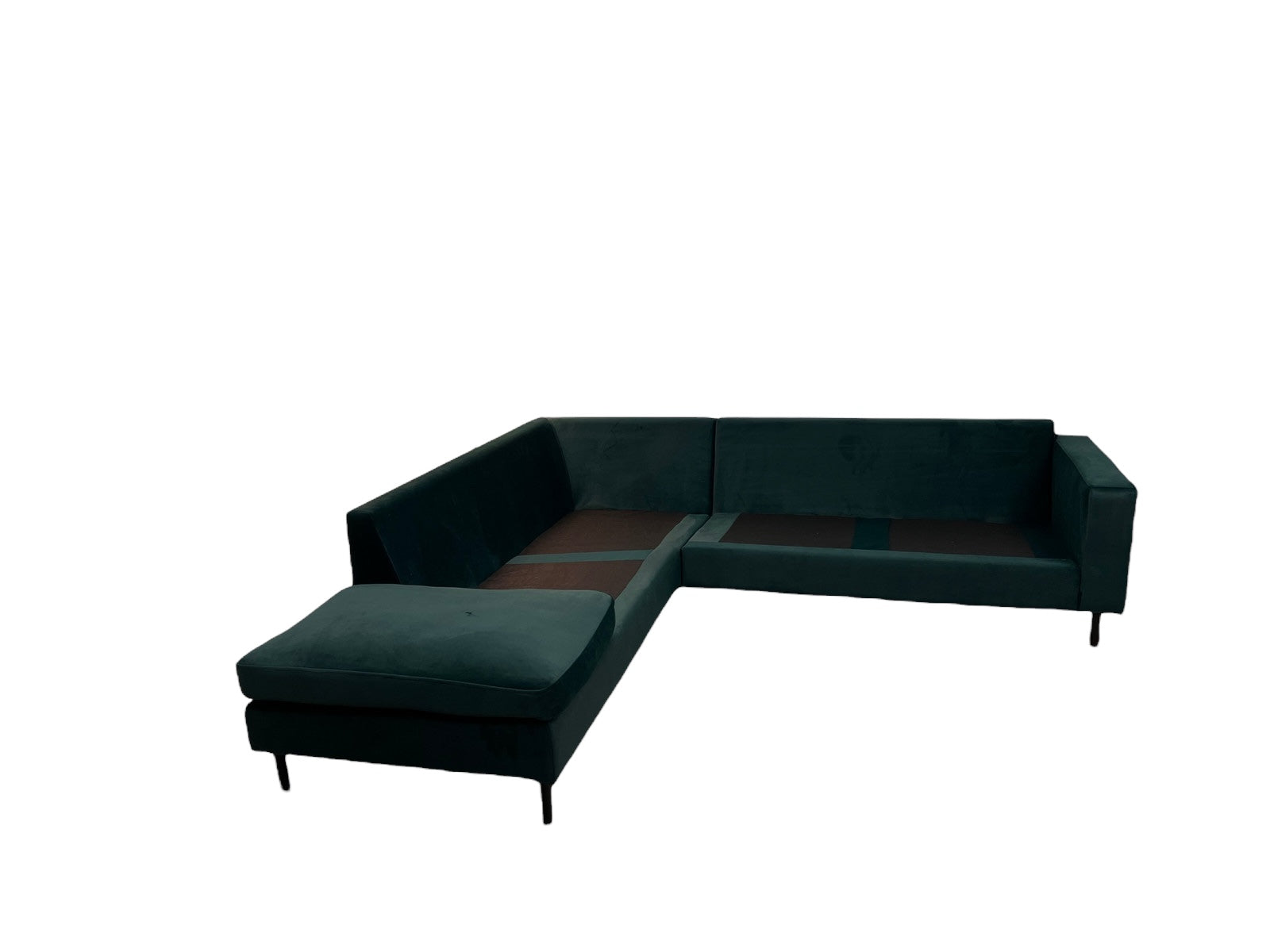Lekkert, nydelig, nyomtrukket, meget komfortabel, stilren, skadefri, flekkfri Scandinavia design hjørnesofa med åpen ende til venstre sett forfra (sidene kan ikke vendes) i utrolig fin mørkgrønn farge fra Bolia selges til en veldig lav pris. Meget komfortable sete og ryggputter. Trukket om i slitesterk, hudvennlig og meget behagelig original fløyel / velur møbel stoff (60000 martindale). Den fremstår som helhetlig pen, uten slitasjer eller skader og tilbyr en behagelig middels fast til myk sittekomfort. Avtakbare trekk på alle puttene for enkelt rengjøring. Rygg- og seteputtene er laget av kaldskum, med dun på øverste laget av seteputtene. På lager og klar for levering. Sofaen kommer i 2 deler for letter frakt. Kan sendes over hele landet etter avtale.