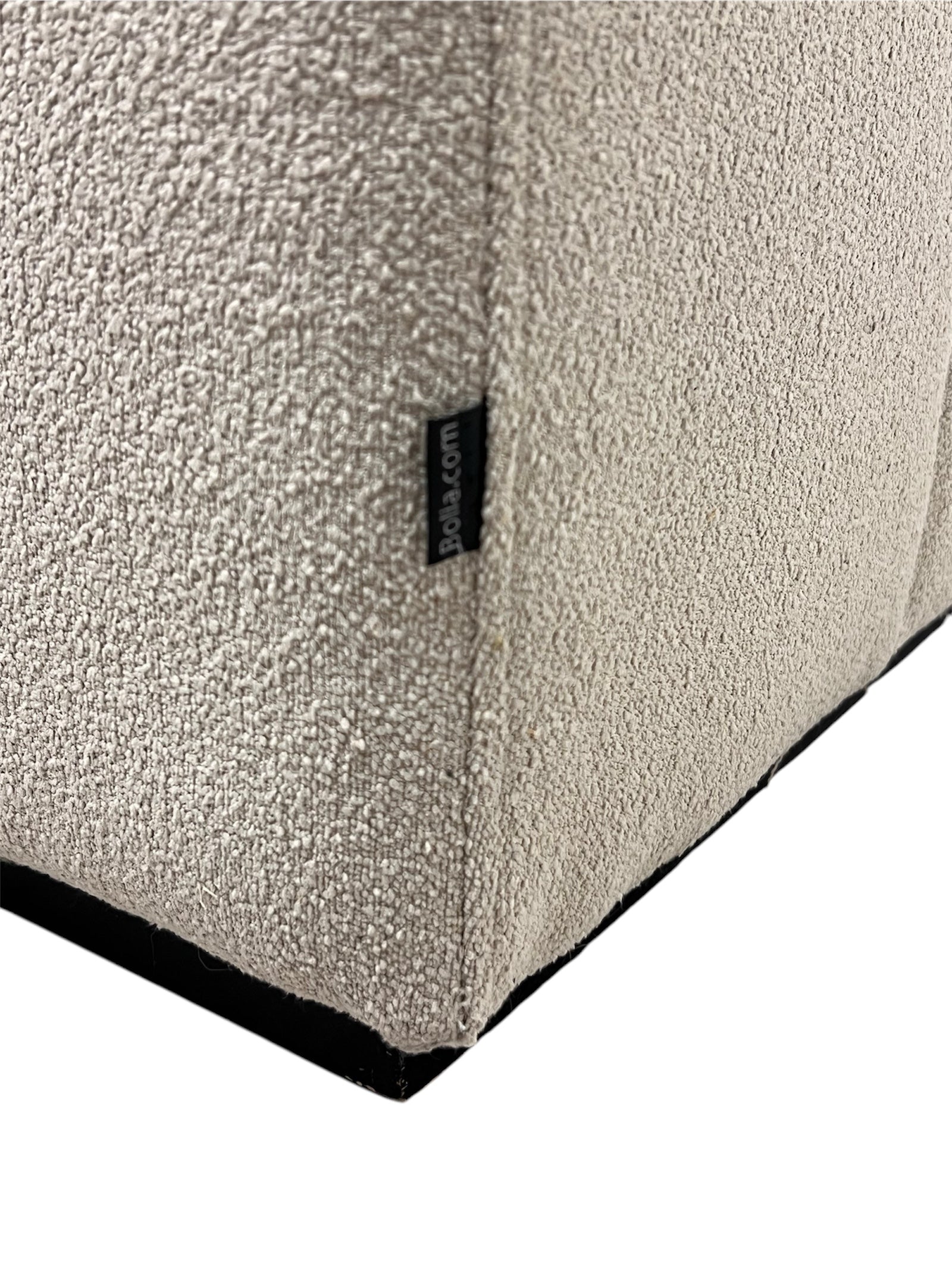 Lekkert, nydelig, nyomtrukket, meget komfortabel, høy kvalitet, skadefri, flekkfri Sepia design hjørnesofa med sjeselong til høyre sett forfra (sidene kan ikke vendes) i veldig fin lysbeige /sand aktig farge fra Bolia selges til en veldig lav pris. Meget komfortable sete og ryggputter. Trukket om med slitesterk, hudvennlig og behagelig original møbel boucle stoff (60000 martindale). Den fremstår som helhetlig pen, uten slitasje, og tilbyr en behagelig middels fast til myk sittekomfort.