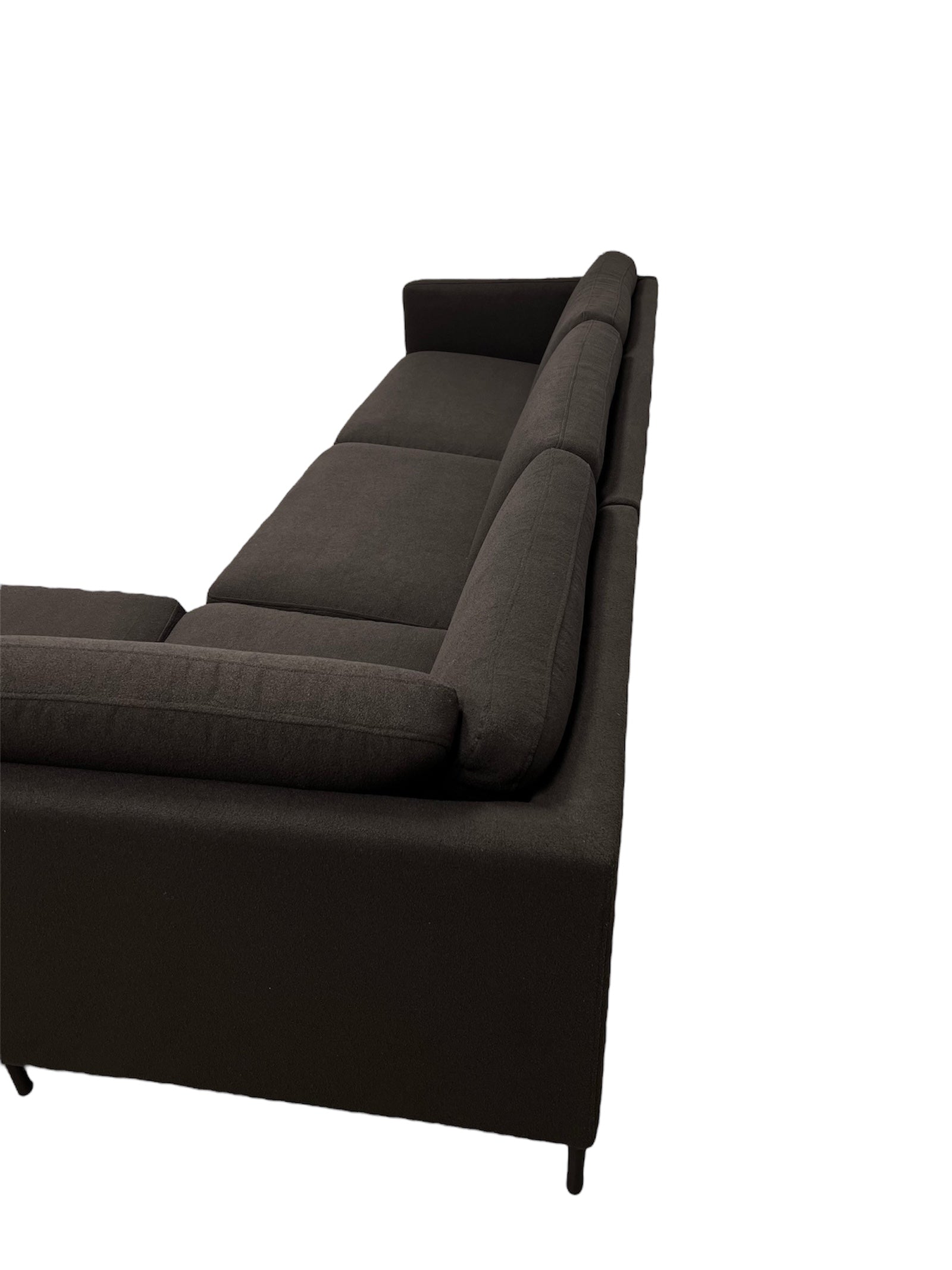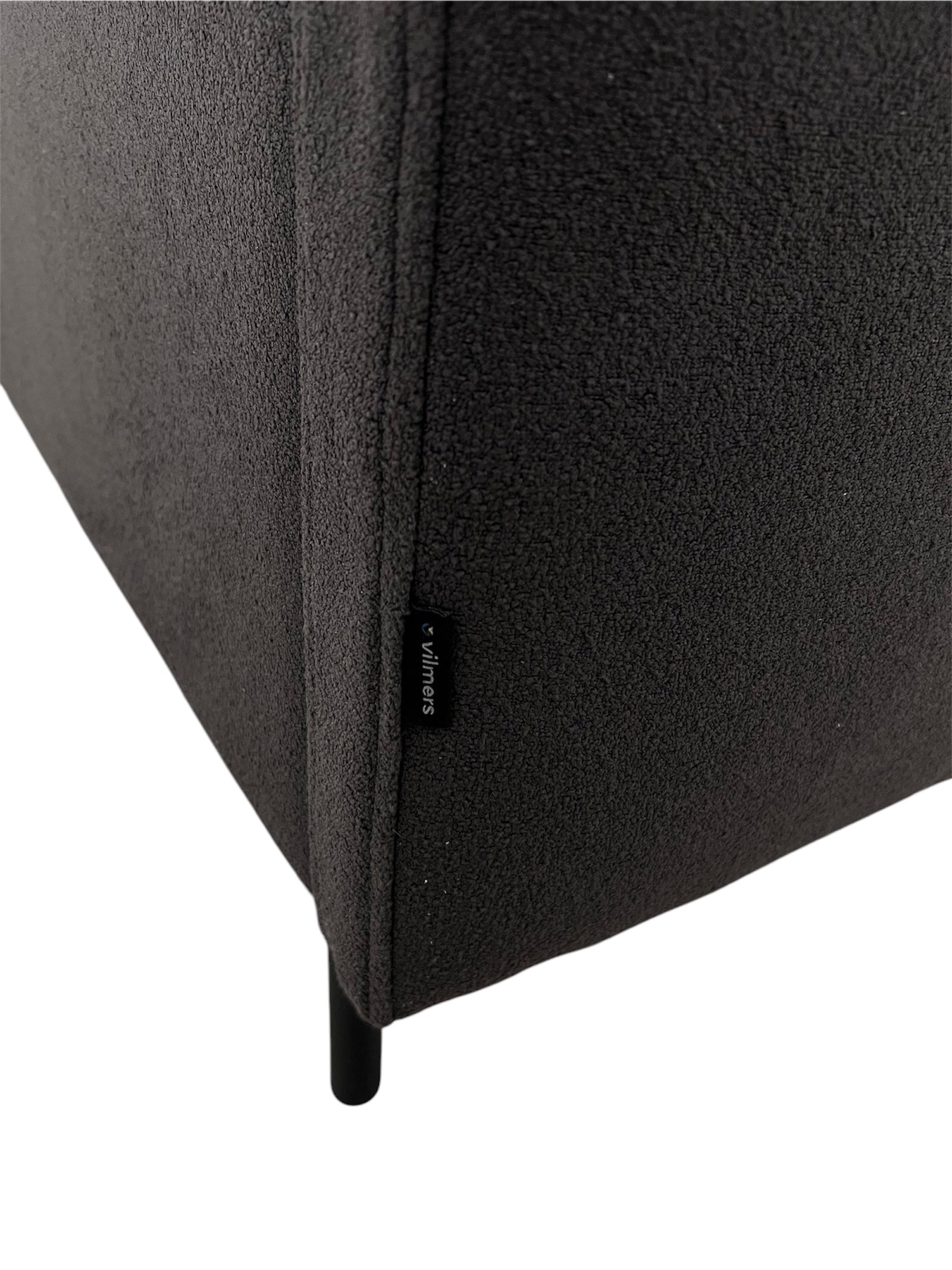 Lekkert, nydelig, nyomtrukket, meget komfortabel, høy kvalitet, skadefri, flekkfri Vilmers Nordic design hjørnesofa med åpen ende til høyre sett forfra (sidene kan ikke vendes) i veldig fin mørkgrå aktig farge fra Bohus selges til en veldig lav pris. Meget komfortable sete og ryggputter. Trukket om med slitesterk, hudvennlig og behagelig original møbel boucle stoff (60000 martindale). Den fremstår som helhetlig pen, uten noe slitasje, og tilbyr en behagelig middels fast til myk sittekomfort. Avtakbare trekk på alle puttene for enkelt rengjøring. På lager og klar for levering. Sofaen kommer i 2 deler for lettere frakt. Kan sendes over hele landet etter avtale.