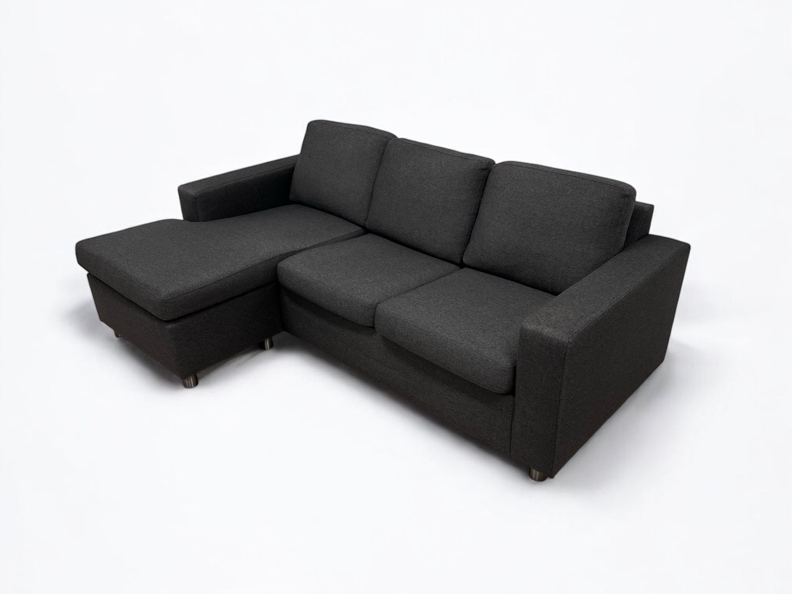 Veldig fin, nydelig, komfortabel, nyrenset, flekkfri, skadefri hjørnesofa med vendbar sjeselong (sidene kan vendes) i veldig fin mørkgrå farge fra Skeidar selges til en veldig lav pris. Meget komfortable sete og ryggputter. Laget av slitesterk, hudvennlig stoff. Den fremstår som helhetlig pen, uten store bruksslitasje, og tilbyr en behagelig middels fast til myk sittekomfort. Tilstanden av sofaen er vist så klart som mulig på bildene og video av varen.