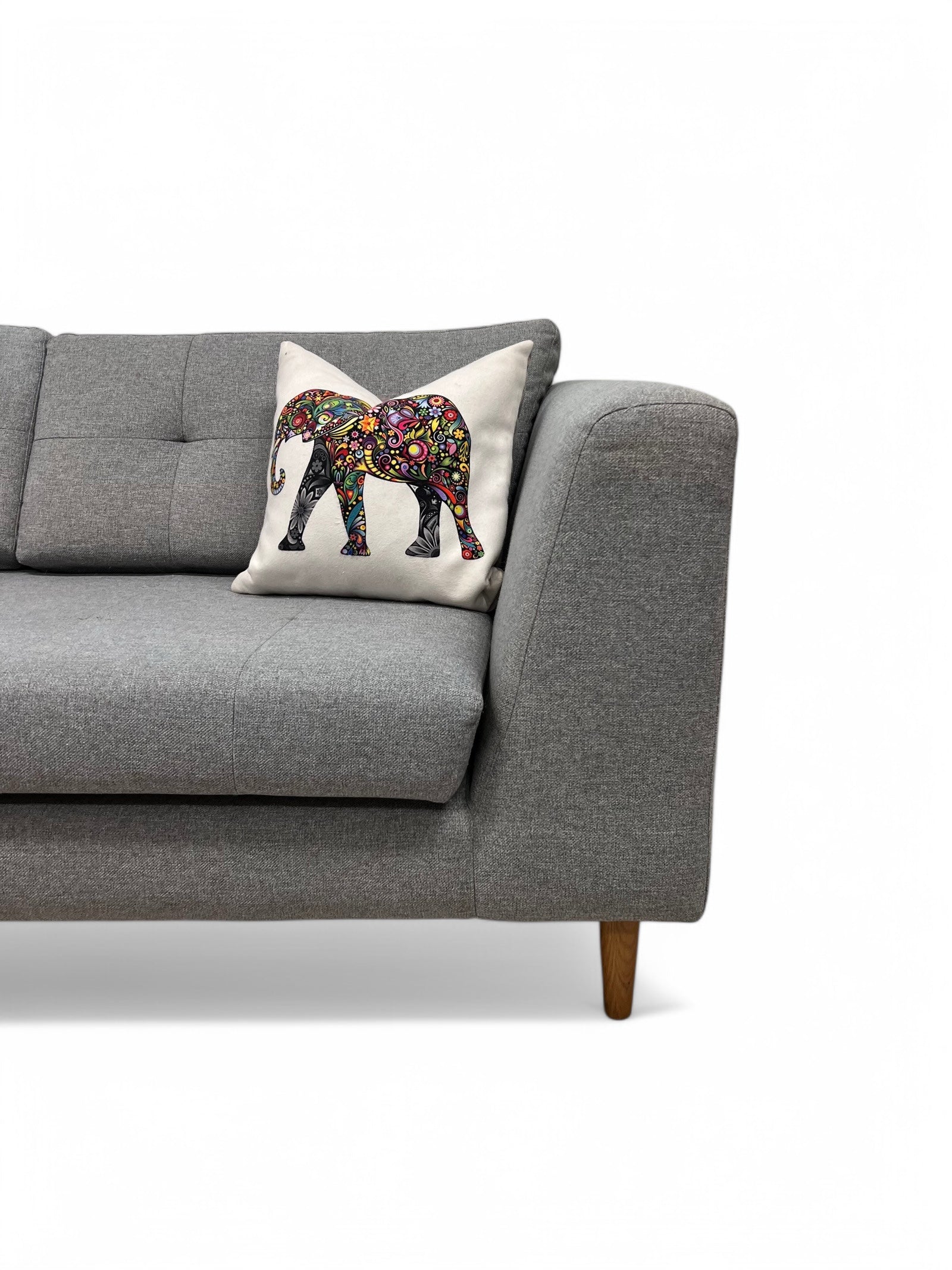Lekkert, nydelig, meget komfortabel, stilren, skadefri, nyrenset, men litt solfalmet Nelson design hjørnesofa med åpen ende til venstre sett forfra (sidene kan ikke vendes) i fin lysgrå aktig farge fra Sofacompany selges til en veldig lav pris. Meget komfortable sete og ryggputter. Laget av slitesterk, hudvennlig stoff. Den fremstår som helhetlig pen, uten store slitasjer eller skader og tilbyr en behagelig middels fast til myk sittekomfort. Tilstanden av sofaen er vist så klart som mulig på bildene og video av varen. Avtakbare trekk på alle puttene for enkelt rengjøring. På lager og klar for levering. Sofaen kommer i to deler for letere frakt. Kan sendes over hele landet etter avtale.