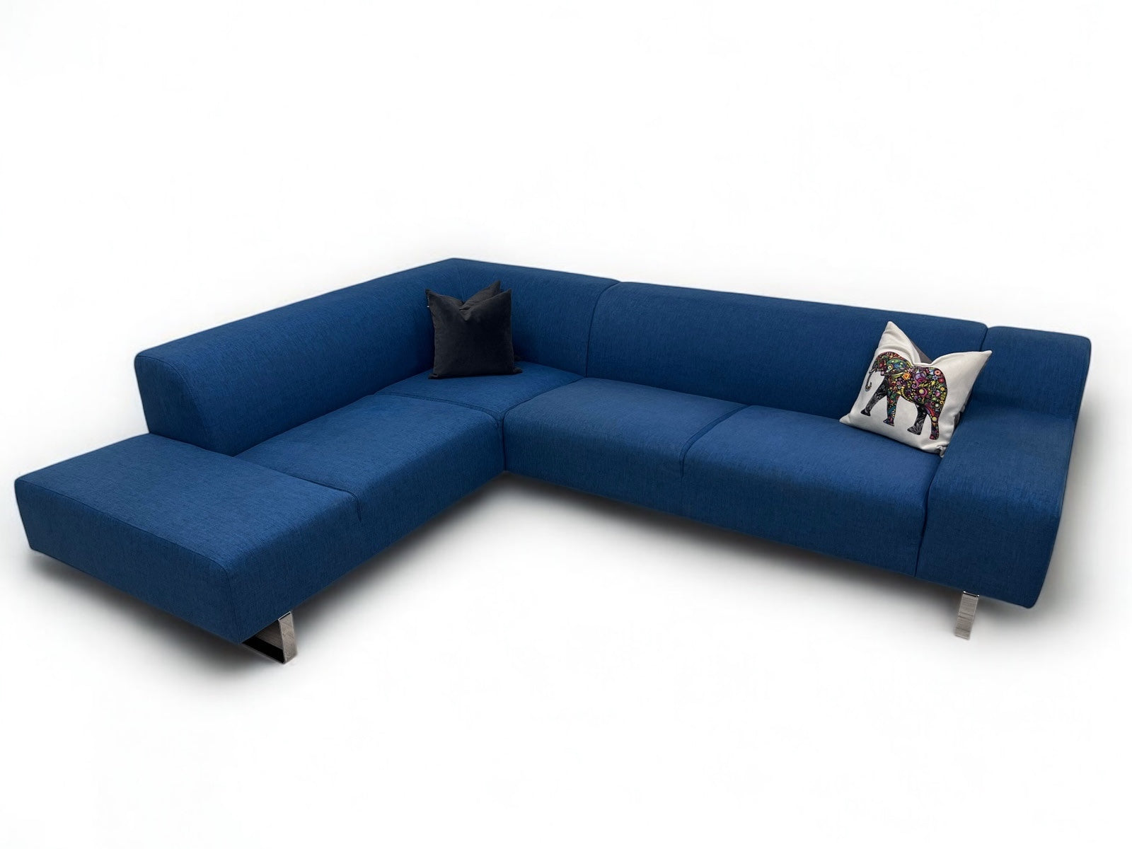 Lekkert, nydelig, meget komfortabel, nyrenset, stilren, skadefri, Seville design hjørnesofa med åpen ende til venstre sett forfra (sidene kan ikke vendes) i veldig fin blå farge fra Bolia selges til en veldig lav pris. Meget komfortable sete og ryggputter. Laget av slitesterk, hudvennlig nantes stoff. Den fremstår som helhetlig pen, uten store slitasjer eller skader og tilbyr en behagelig middels fast til myk sittekomfort. På lager og klar for levering. Sofaen kommer i 2 deler for lettere frakt. Kan sendes over hele landet etter avtale.